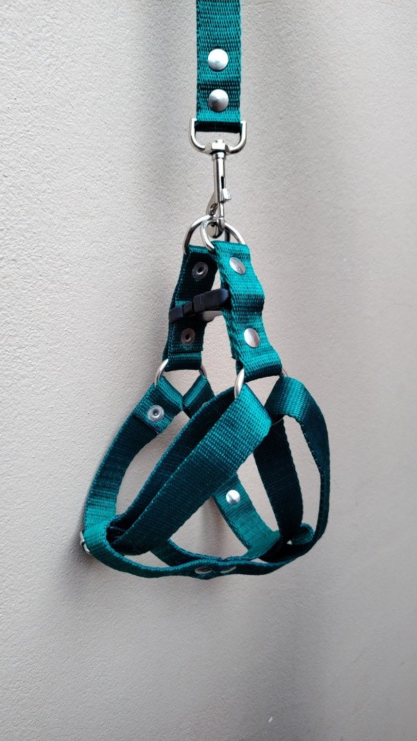 Pretal liso realizado con cinta de polipropileno de 500 hilos super resistentes, con dos reguladores metalicos, doble medialuna para la correa y un broche fabricado en resina. Remaches de hierro en todas las uniones y argollas soldadas siendo muy seguras.