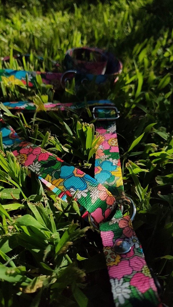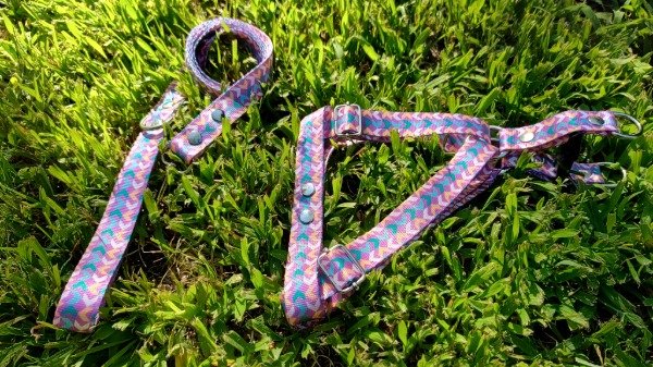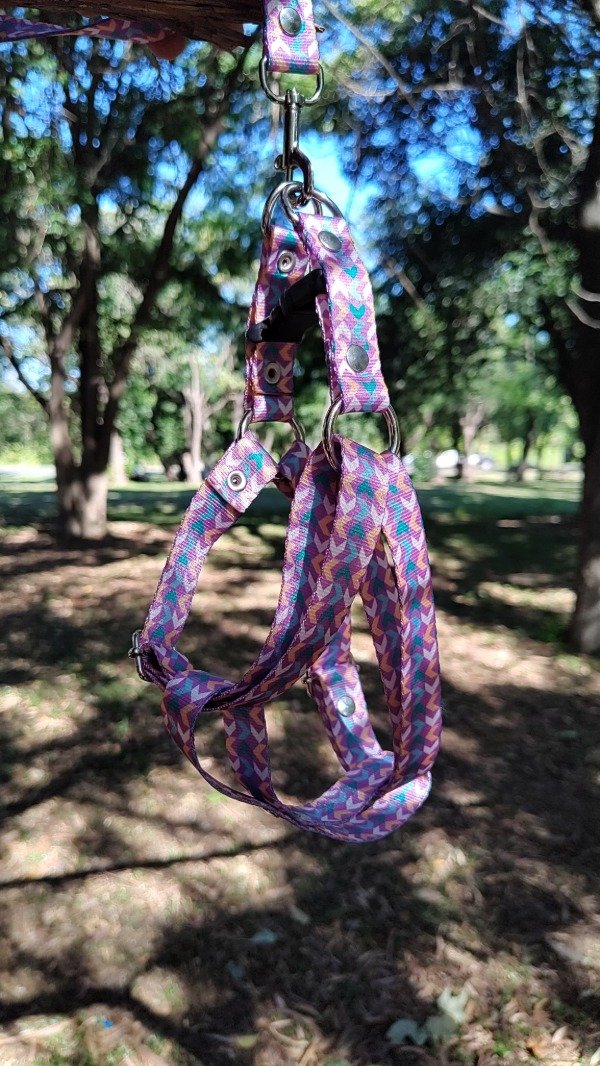 Pretal confeccionado en poliéster , un material resistente, suave y muy comodo para tu mascota. Sus aros y remaches son de acero inoxidable para asegurar su durabilidad. Con una hebilla segura y practica para abrochar.